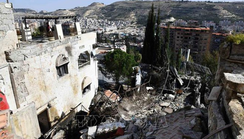 Hiện trường cuộc không kích của Israel xuống Damascus, Syria. (Ảnh: THX/TTXVN)