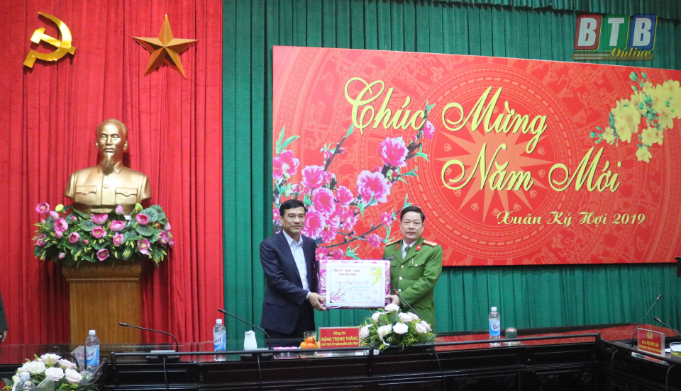Nhân dịp này, thay mặt Tỉnh ủy, HĐND, UBND tỉnh, đồng chí Phó Bí thư Tỉnh ủy, Chủ tịch UBND tỉnh gửi lời chúc sức khỏe đến toàn thể cán bộ, chiến sĩ Công an tỉnh và gia đình bước sang năm mới Kỷ Hợi 2019 mạnh khỏe, hoàn thành xuất sắc nhiệm vụ được giao.