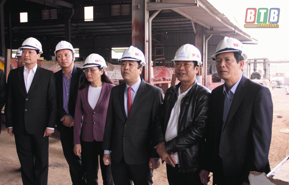 Đồng chí Ngô Đông Hải, Ủy viên dự khuyết Trung ương Đảng, Phó Bí thư thường trực Tỉnh ủy và các đồng chí lãnh đạo tỉnh thăm hoạt động sản xuất tại Công ty TNHH Minh Danh (Cụm công nghiệp Đông La, huyện Đông Hưng).