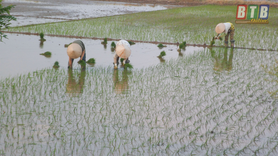 Tại các xã Tây Đô, Đông Đô..., nhiều gia đình tranh thủ thời tiết thuận lợi xuống đồng sản xuất, bảo đảm tiến độ gieo cấy trong khung thời vụ được khuyến cáo.