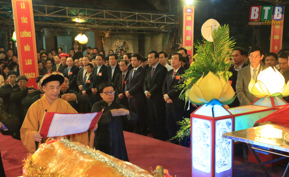 Dự buổi lễ có các đồng chí: Nguyễn Hồng Diên, Ủy viên Trung ương Đảng, Bí thư Tỉnh ủy, Chủ tịch HĐND tỉnh, Trưởng đoàn đại biểu Quốc hội tỉnh; Đặng Trọng Thăng, Phó Bí thư Tỉnh ủy, Chủ tịch UBND tỉnh; Ngô Đông Hải, Ủy viên dự khuyết Trung ương Đảng, Phó Bí thư thường trực Tỉnh ủy; đại diện lãnh đạo Bộ Văn hóa, Thể thao và Du lịch; các đồng chí trong Ban Thường vụ Tỉnh ủy, lãnh đạo HĐND, UBND tỉnh, Ủy ban MTTQ Việt Nam tỉnh; lãnh đạo các sở, ban, ngành, MTTQ và các đoàn thể; lãnh đạo các huyện, thành phố cùng đông đảo nhân dân và du khách thập phương.