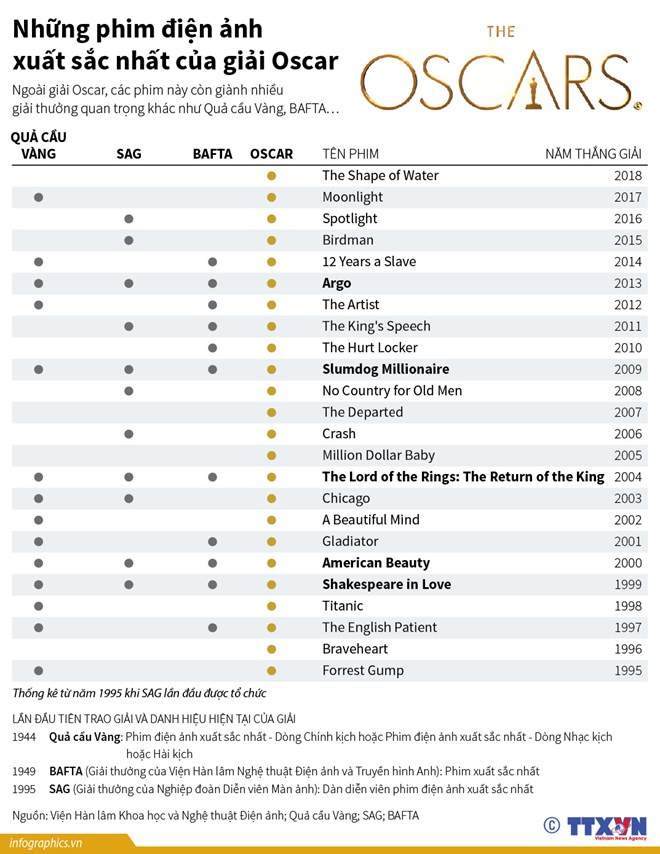 Ngoài giải Oscar, các phim này còn giành nhiều giải thưởng quan trọng khác như Quả cầu Vàng, BAFTA…
