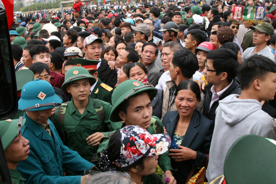 Người thân, bạn bè tiễn đưa thanh niên huyện Thái Thụy lên đường thực hiện nghĩa vụ thiêng liêng với Tổ quốc.