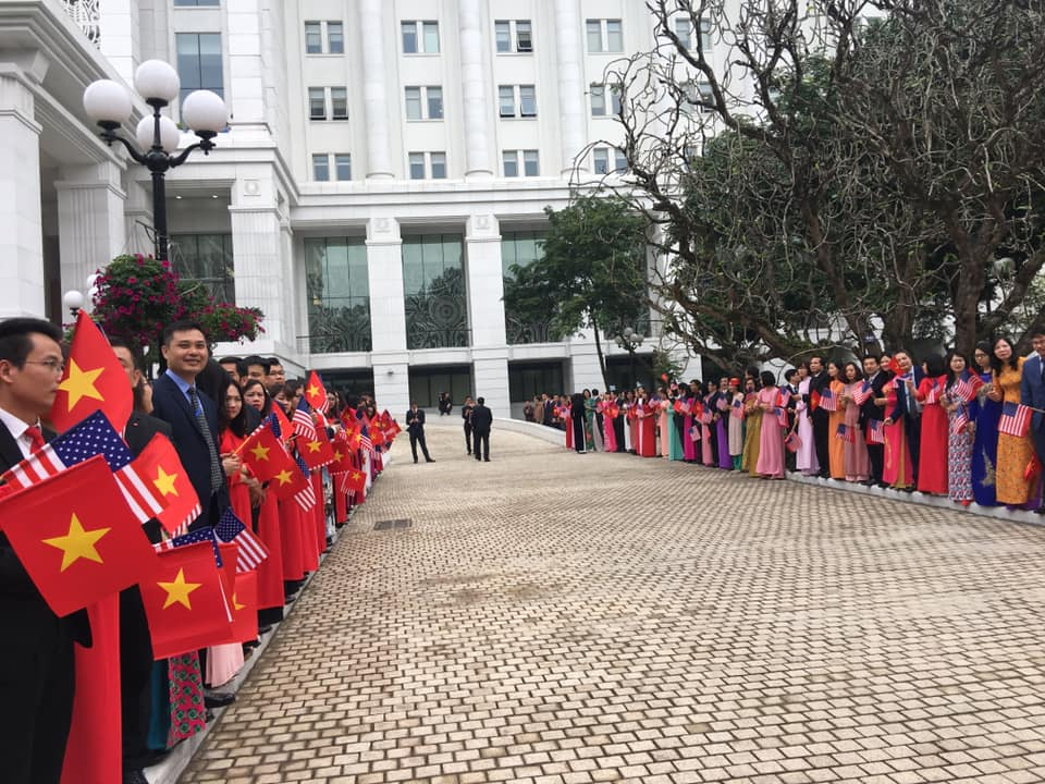Đông đảo cán bộ, công chức, viên chức, người lao động Văn phòng Chính phủ sẵn sàng chào đón Tổng thống Hoa Kỳ tới hội kiến với Thủ tướng Nguyễn Xuân Phúc.