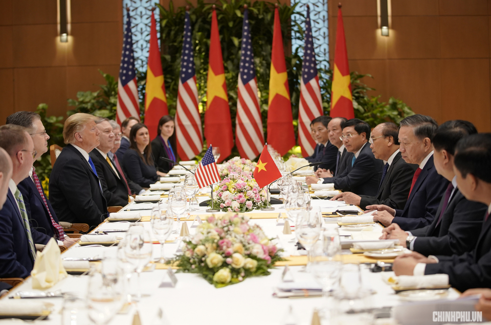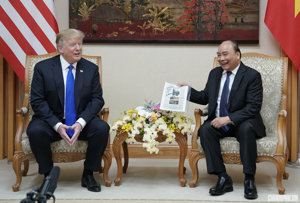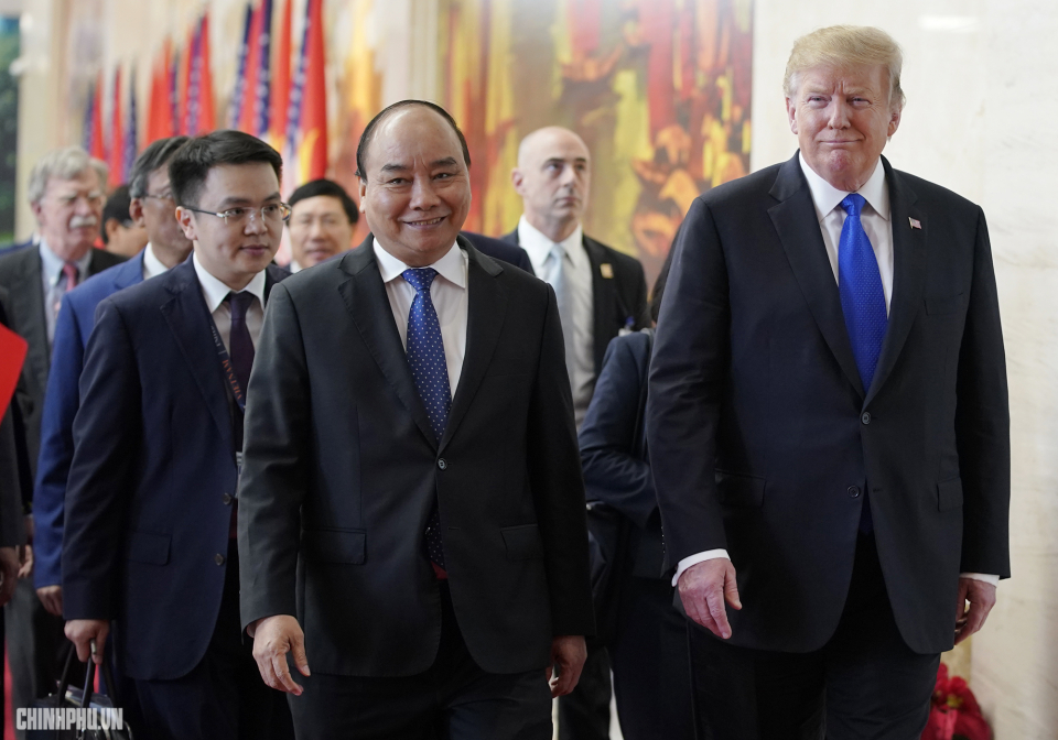 Trưa 27/2, tại Trụ sở Chính phủ, Thủ tướng Chính phủ Nguyễn Xuân Phúc đã đón tiếp Tổng thống Hoa Kỳ Donald Trump trong dịp ông Donald Trump tới Hà Nội dự Thượng đỉnh Hoa Kỳ - Triều Tiên lần thứ 2.