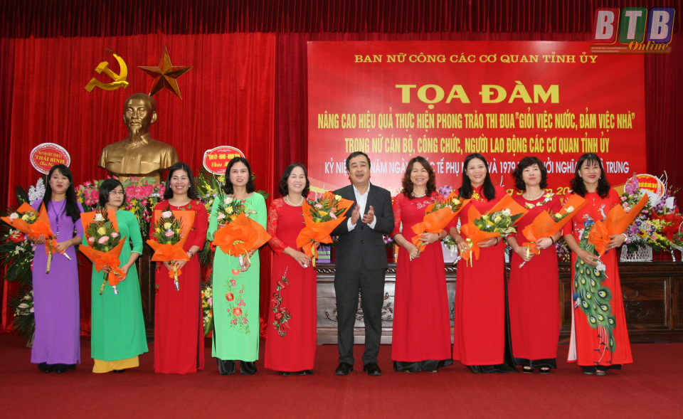 Tại buổi tọa đàm, các đại biểu đã cùng nhau ôn lại lịch sử truyền thống của phụ nữ toàn thế giới và truyền thống vẻ vang của phụ nữ Việt Nam trong lịch sử hàng nghìn năm dựng nước và giữ nước của dân tộc. Phát huy truyền thống yêu nước và cách mạng của các thế hệ phụ nữ Việt Nam, những năm qua Ban nữ công các cơ quan Tỉnh ủy, Ban nữ công Sở Nội vụ đã tích cực triển khai, nâng cao chất lượng sinh hoạt với nhiều hình thức phong phú, thiết thực, lồng ghép công tác chăm lo, bảo vệ quyền lợi chính đáng cho nữ cán bộ, công chức, viên chức, người lao động với nhiệm vụ chính trị từng cơ quan, đơn vị. Thực hiện phong trào thi đua “Giỏi việc nước, đảm việc nhà”, 100% nữ cán bộ, công chức, viên chức, người lao động các cơ quan đăng ký và tích cực tham gia, đạt được nhiều kết quả đáng khích lệ. Trong công việc cơ quan, chị em đã không ngừng học tập, nâng cao trình độ lý luận, chuyên môn nghiệp vụ, chủ động sáng tạo trong công tác tham mưu, nỗ lực hoàn thành tốt nhiệm vụ được giao. Đối với gia đình và xã hội, chị em luôn là người giữ gìn các truyền thống văn hóa, truyền thống gia đình, là người thắp lửa, giữ lửa cho gia đình... Kết quả, 100% chị em đạt phụ nữ “Giỏi việc nước, đảm việc nhà”, trong đó nhiều chị em được các cấp, các ngành khen thưởng.