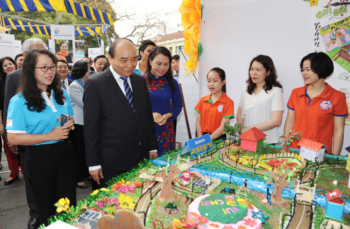 Thủ tướng Nguyễn Xuân Phúc và các đại biểu tham quan sự kiện bên lề Lễ phát động.