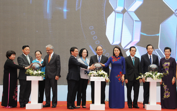 Thủ tướng Nguyễn Xuân Phúc và các đại biểu thực hiện nghi thức phát động buổi lễ.