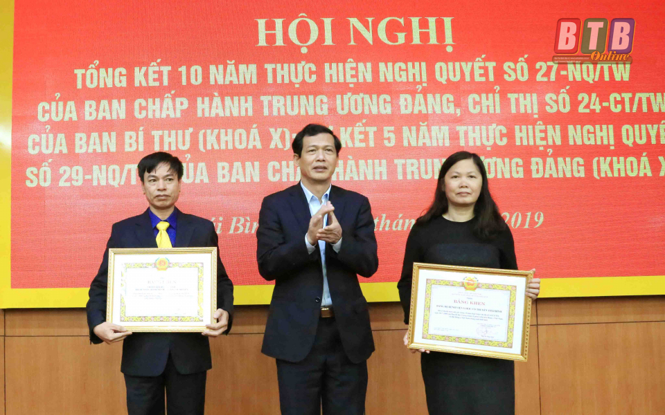 Tại hội nghị, thay mặt Ban Thường vụ Tỉnh ủy, các đồng chí: Ngô Đông Hải, Ủy viên dự khuyết Trung ương Đảng, Phó Bí thư thường trực Tỉnh ủy; Nguyễn Hồng Chuyên, Ủy viên Ban Thường vụ, Trưởng ban Tuyên giáo Tỉnh ủy tặng bằng khen cho các tổ chức cơ sở đảng có thành tích xuất sắc trong thực hiện các chỉ thị, nghị quyết của Ban Chấp hành, Ban Bí thư Trung ương Đảng.