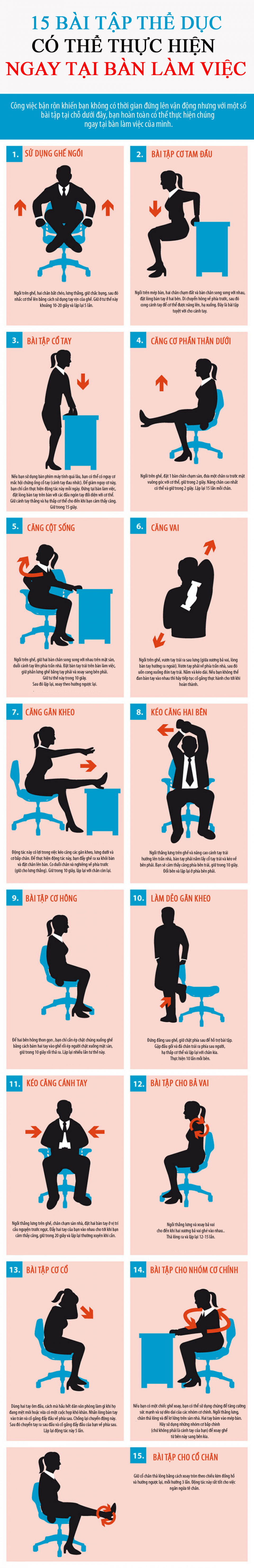 15 bài thể dục tập tại bàn làm việc