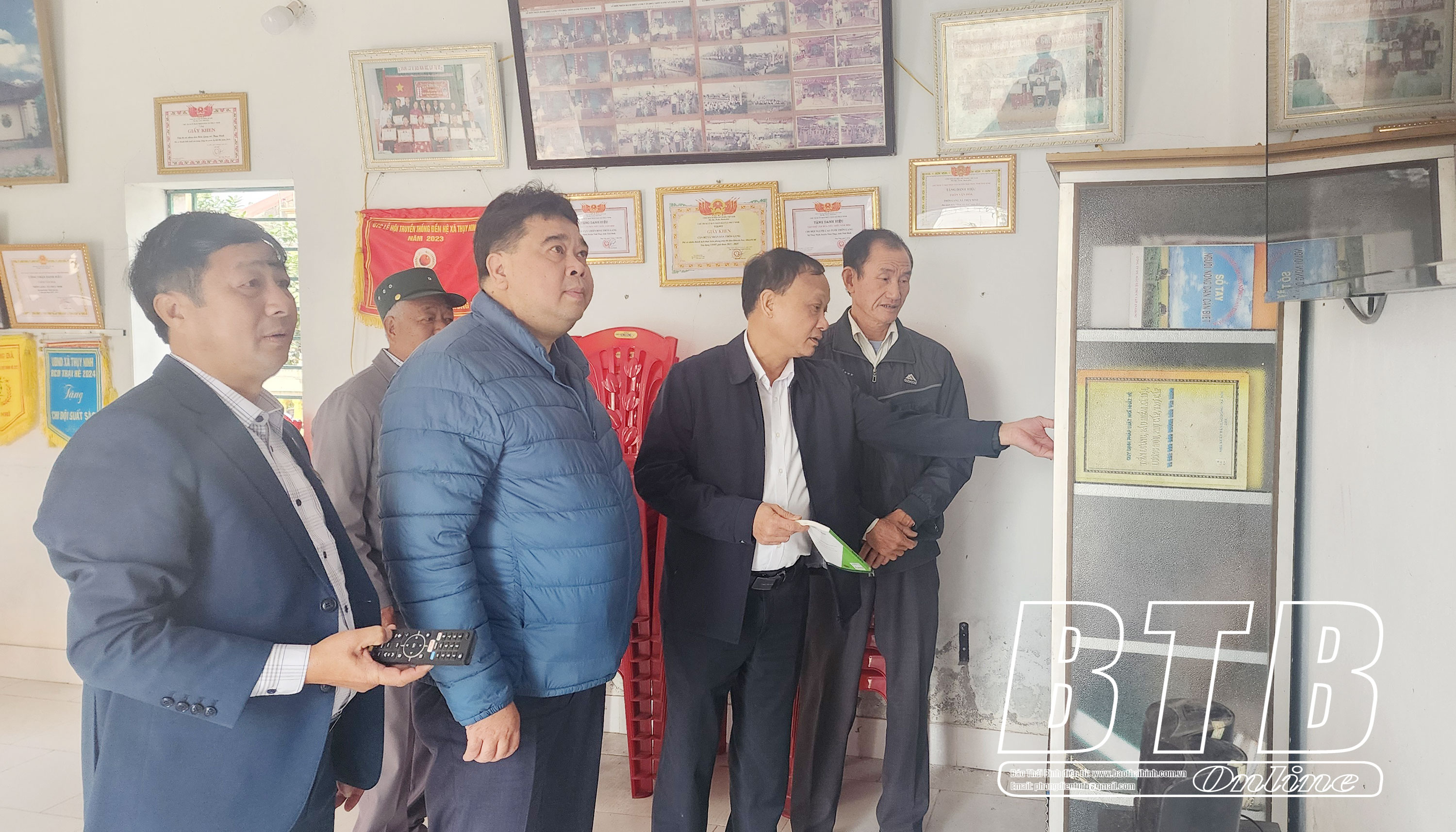 Lãnh đạo Sở Nông nghiệp và Phát triển nông thôn kiểm tra tiêu chí văn hóa tại Nhà văn hóa thôn Gang.