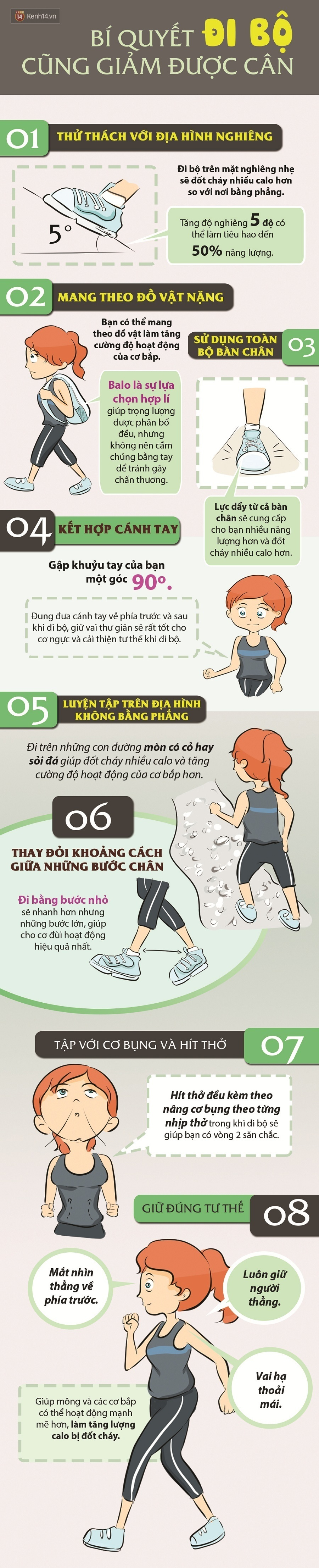 Đi bộ đúng cách không chỉ giúp bạn thư giãn, giảm mệt mỏi mà còn kích thích các cơ bắp hoạt động, đốt đi một lượng mỡ thừa đáng kể.