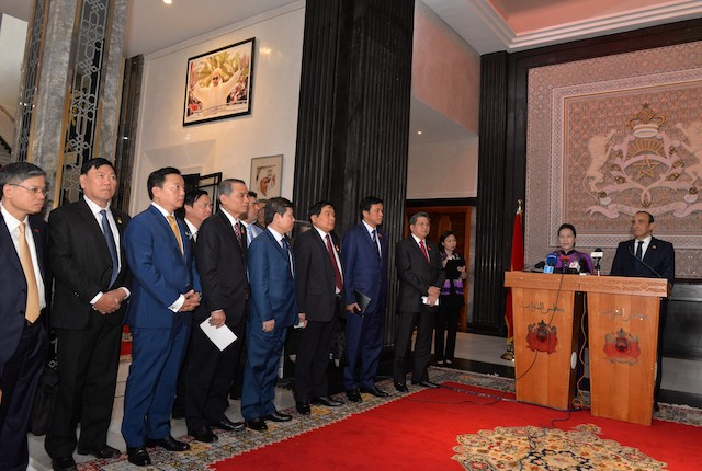 Chủ tịch Quốc hội bày tỏ hy vọng, với tư cách là thành viên Liên minh châu Phi (AU), Maroc sẽ hỗ trợ và thúc đẩy quan hệ giữa Việt Nam và AU, giúp sớm tiến hành thiết lập quan hệ chính thức trong thời gian tới. Về phần mình, Việt Nam sẵn sàng là cầu nối trong quan hệ giữa Maroc với các nước ASEAN.