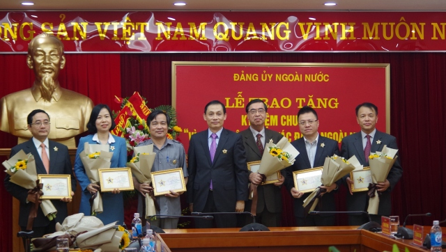 Nhân dịp này, Đảng ủy ngoài nước tổ chức Lễ trao tặng Kỷ niệm chương “Vì sự nghiệp công tác Đảng ngoài nước” để ghi nhận những cống hiến, đóng góp của các đồng chí nguyên Lãnh đạo Đảng, Nhà nước và một số bộ, ngành trong sự nghiệp xây dựng và phát triển công tác Đảng ngoài nước./.
