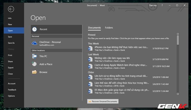 Trước tiên, bạn nên tìm hiểu qua cách làm thế nào để xem các tập tin đã mở gần đây.