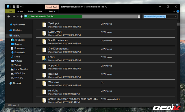 Rất đơn giản, hãy nhập cụm từ "datemodified:" vào thanh tìm kiếm của File Explorer và nhấn phím ENTER.