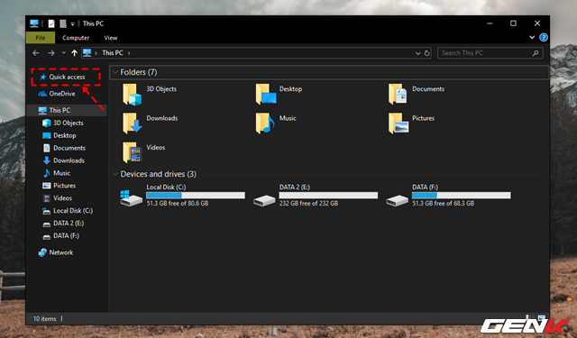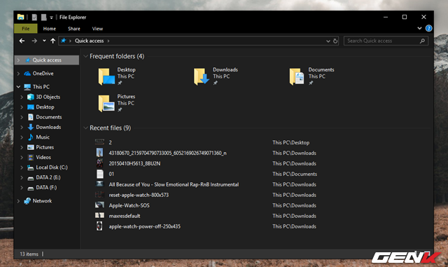 Quick access sẽ là nơi chứa danh sách các dữ liệu mà lượt sử dụng máy tính trước đã truy cập và sử dụng.