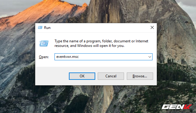 Để truy cập vào tính năng Event Viewer, đầu tiên bạn nhấn tổ hợp phím Windows + R để gọi cửa sổ lệnh Run, sau đó nhập eventvwr.msc vào đó rồi nhấn Enter để gọi Event Viewer.