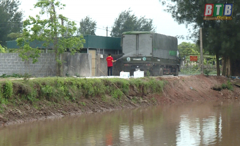 Theo ông Rạng, thời gian gần đây, trang trại lợn bên cạnh ao nuôi của ông mới xây dựng bể chứa hóa chất tiêu độc, khử trùng trước cổng và nằm sát bờ ao của gia đình. Trong quá trình ô tô vận chuyển lợn ra vào trang trại đi qua khu chứa hóa chất tiêu độc khử trùng gây tràn hóa chất xuống ao làm cá chết hàng loạt.