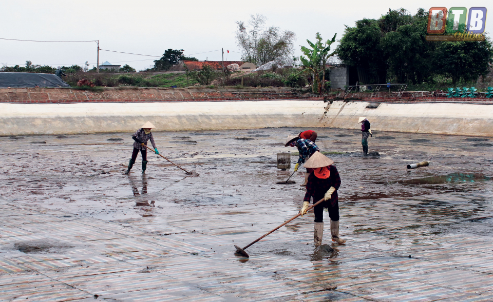 Còn đối với tôm thẻ chân trắng, việc nuôi tôm theo hình thức bán thâm canh trong vùng chuyển đổi của toàn tỉnh là 240ha (chiếm 64,86% tổng diện tích nuôi tôm thẻ chân trắng). Tôm nuôi trong điều kiện ao đất (không lót bạt), hạ tầng thiếu đồng bộ (thiếu điện sản xuất, không có ao chứa, ao xử lý, nước cấp, nước thải...), không kiểm soát tốt môi trường và dịch bệnh nên tỷ lệ rủi ro cao. Một năm người nuôi thả từ 1 - 2 vụ (do thời gian cải tạo ao kéo dài), mật độ từ 40 - 100 con/m2, năng suất chỉ đạt từ 0,5 - 1 tấn/ha/vụ. Còn hình thức nuôi tôm thẻ chân trắng thâm canh theo hướng công nghệ mới chỉ đạt 130ha, chiếm khoảng 35% tổng diện tích nuôi tôm thẻ chân trắng và bằng 4,35% diện tích nuôi tôm nước lợ. Nguyên nhân chính là muốn áp dụng những công nghệ mới (công nghệ Biofloc, vi sinh, tuần hoàn ít thay nước, nuôi tôm qua đông trong nhà kính) cần nhiều vốn để đầu tư kết cấu hạ tầng nuôi đồng bộ, khép kín gồm ao nuôi, ao chứa lắng xử lý nước cấp, nước thải; các loại máy móc, thiết bị phụ trợ như máy cho ăn, sục khí, quạt nước, dụng cụ quản lý môi trường... Cùng với đó, người nuôi tôm phải có trình độ kỹ thuật, trong khi phần lớn các chủ hộ nuôi chỉ là nông dân vùng biển sản xuất nhỏ lẻ, theo kinh nghiệm.