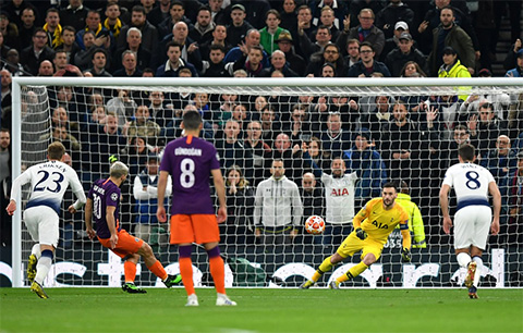 Rất tiếc cho Man City là tiền đạo từng ghi 10 bàn trong 13 lần chạm trán Tottenham là Aguero lại không thắng được thủ môn Lloris từ cự ly 11m. Như vậy là trong năm 2019, thủ môn người Pháp đã cản phá thành công cả 3 quả phạt đền mà Tottenham phải chịu.