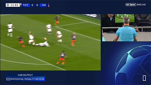 Mặc dù vậy, trong hiệp đấu thứ nhất Man City vẫn cầm bóng đến 60% và chính họ là đội tạo ra cơ hội rõ ràng hơn cả. Phút 12, trọng tài đã tham khảo công nghệ VAR và xác định Rose để bóng chạm tay trong vòng cấm Tottenham sau cú đá rất mạnh của Sterling.