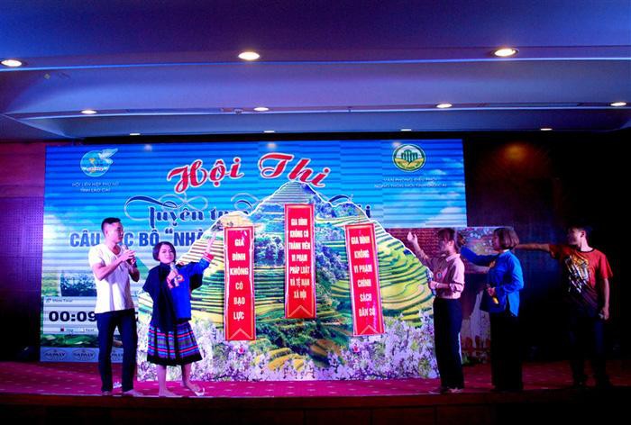 Hội LHPN tỉnh Lào Cai tuyên truyền các tiêu chí của Cuộc vận động "Xây dựng gia đình 5 không 3 sạch". Ảnh: Kim Ngân