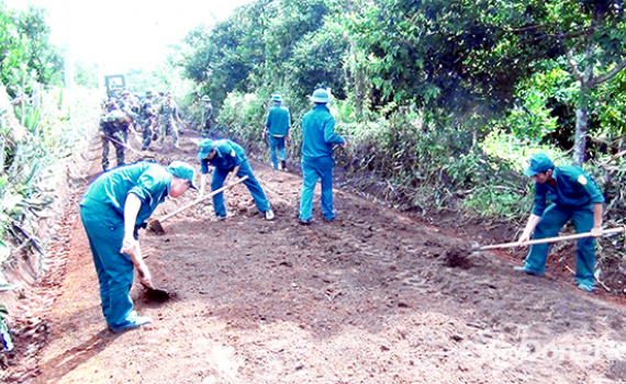 Lực lượng vũ trang TP.Long Khánh giúp dân làm đường giao thông nông thôn tại xã Bảo Quang. Ảnh: N. Anh