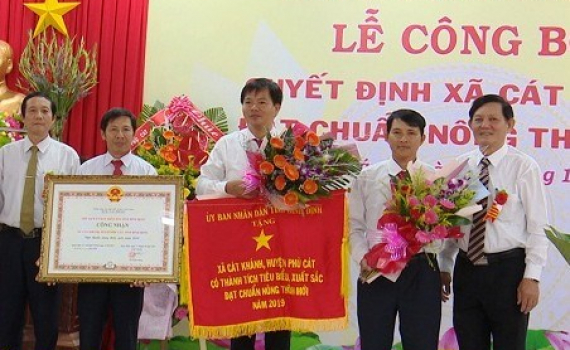 Thừa lệnh chủ tịch UBND tỉnh Bình Định, UBND huyện Phù Cát, đã trao Bằng công nhận xã đạt chuẩn NTM và Cờ thi đua của UBND tỉnh cùng với số tiền thưởng 2 tỷ đồng cho cán bộ và nhân dân xã Cát Khánh về thành tích tiêu biểu, xuất sắc trong xây dựng xã đạt chuẩn NTM năm 2019.
