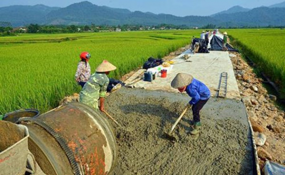 Làm đường giao thông nông thôn ở Vĩnh Phúc.