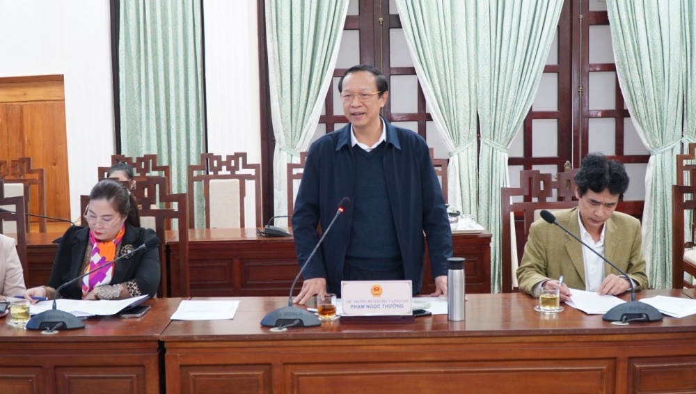 Thứ trưởng Bộ Giáo dục và Đào tạo Phạm Ngọc Thưởng phát biểu kết luận tại buổi làm việc