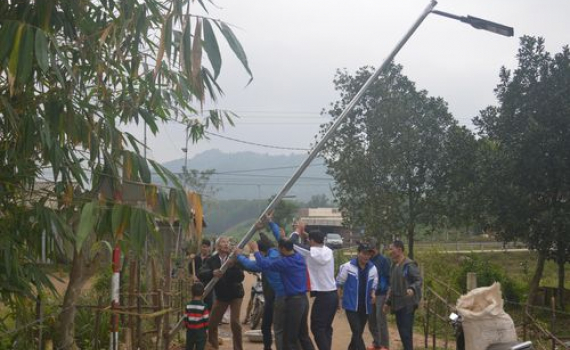 Dựng đường điện chiếu sáng bằng pin mặt trời ở bản La Trọng 1.