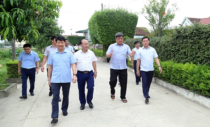 Thứ trưởng Bộ NN&PTNT Trần Thanh Nam cùng đoàn tham quan khu dân cư nông thôn mới kiểu mẫu thôn Châu Nội, xã Tùng Ảnh, huyện Đức Thọ (Ảnh: Báo Hà Tĩnh)