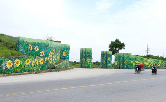 Con đường bích họa chạy qua địa phận xã Tam Hiệp (huyện Phúc Thọ, TP Hà Nội). Ảnh: Lâm Nguyễn