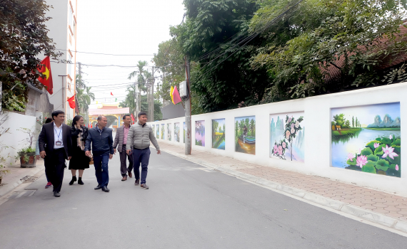 Đoàn thẩm định khảo sát các tiêu chí xây dựng nông thôn mới nâng cao tại xã Dương Xá (Ảnh: Mai Quý)