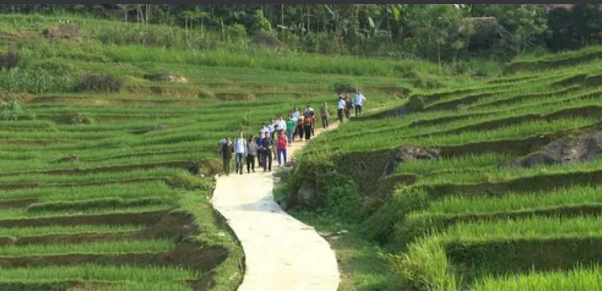 Các đại biểu tham quan đường giao thông ở thôn Bầm, xã Thành Lâm.