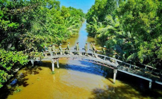 Cán bộ, chiến sĩ Tiểu đoàn 207, Trung đoàn 893 thuộc Bộ chỉ huy quân sự tỉnh Kiên Giang hành quân dã ngoại.(Ảnh: Phương Vũ)