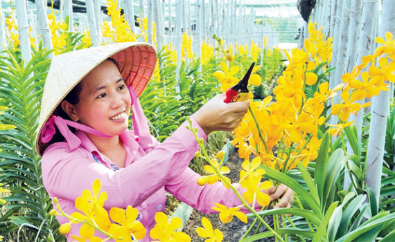 Tại vườn lan rộng gần 6.000 m2 của gia đình mình, chị Trần Thị Mỹ Trinh (xã Tân Thông Hội, huyện Củ Chi) phấn khởi và biết ơn sự hỗ trợ, đồng hành của các cấp chính quyền nhiều năm qua hỗ trợ chị khởi nghiệp thành công với nghề trồng lan mokara. Từng là công nhân, nghe Chi hội nông dân xã hướng dẫn về chuyển đổi nghề, chị Trinh tìm đến với hy vọng có thể cải thiện thu nhập gia đình. Tận dụng diện tích 500 m2 của gia đình, chị bắt đầu học trồng lan mokara cắt cành. Khi nắm được kỹ thuật trồng lan, thông qua sự hỗ trợ của xã, chị tiếp tục được Trung tâm công nghệ sinh học hỗ trợ thêm 500 gốc lan để nhân lên số gốc lan trong vườn nhà. Đến nay, vườn lan của chị đã có 30 nghìn gốc lan trên diện tích khoảng 6.000 m2 cho thu nhập ổn định từ 40 đến 50 triệu đồng/tháng. Theo UBND xã Tân Thông Hội, mô hình trồng lan của chị Trần Thị Mỹ Trinh là một trong những điển hình phát triển kinh tế từ phong trào xây dựng nông thôn mới tại địa phương. Hiện 20 xã của huyện Củ Chi đã cơ bản đạt đủ 19 tiêu chí và huyện đạt cả 9 tiêu chí giai đoạn nâng cao (2016 - 2020), thu nhập bình quân đầu người hơn 60 triệu đồng/năm, hộ nghèo chỉ còn 0,34%.