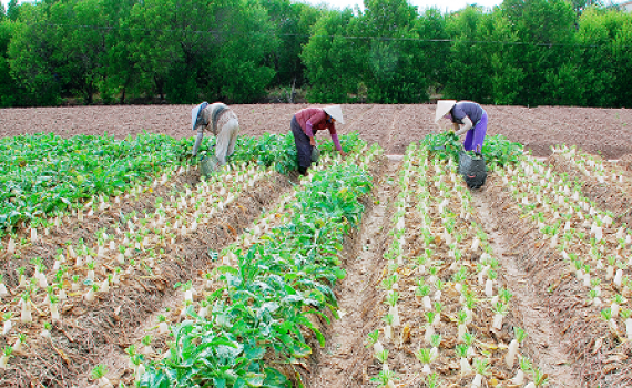 Nông dân xã Hiệp Thành (TP. Bạc Liêu) thu hoạch rau màu. Ảnh: Cổng TTĐT thành phố Bạc Liêu