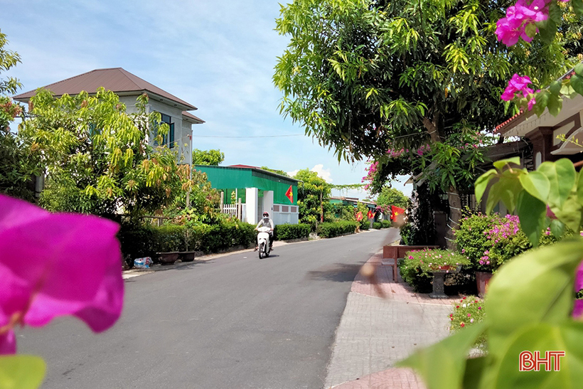 Cây xanh tỏa bóng làm dịu mát không khí nóng bức mùa hè trên những khu dân cư NTM kiểu mẫu ở Thiên Lộc (Can Lộc).