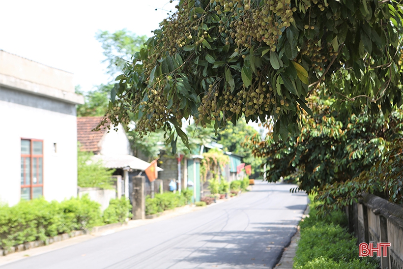 Sự thịnh vượng được tô điểm thêm bởi những hàng cây trái trĩu quả bên đường làng. (Ảnh chụp ở thôn Liên Hạ, Thạch Hạ).
