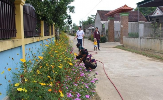 Phong trào làm đường hoa sạch đẹp nông thôn mới ở huyện Anh Sơn (Nghệ An). (Ảnh: Thái Hiền)
