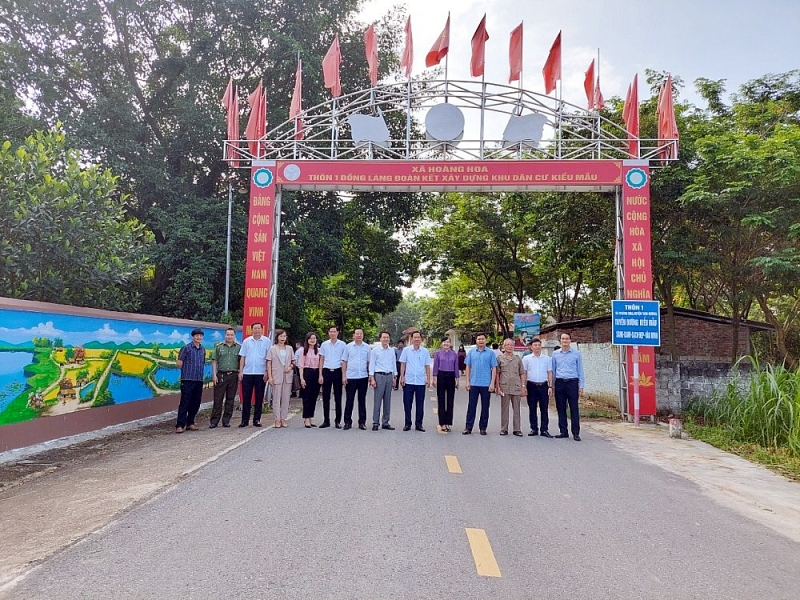 Bí thư Đảng ủy xã Hoàng Hoa Vũ Đại Phong cho biết: Để góp phần hoàn thiện tiêu chí môi trường trong xây dựng nông thôn mới nâng cao, xã đã giao cho Mặt trận Tổ quốc xã chủ trì, phối hợp, phân công cho các tổ chức đoàn thể chịu trách nhiệm vận động đoàn viên, hội viên, các tổ liên gia tự quản thực hiện từng phần việc cụ thể như vận động nhân dân trồng cây xanh, cây canh, vẽ tranh bích họa, lắp điện chiếu sáng đường làng, ngõ xóm, khu dân cư, giữ gìn vệ sinh môi trường và bảo đảm an ninh trật tự.