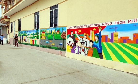 “Con đường bích họa” đầy màu sắc tạo nên không khí vui tươi nhộn nhịp nơi làng quê.