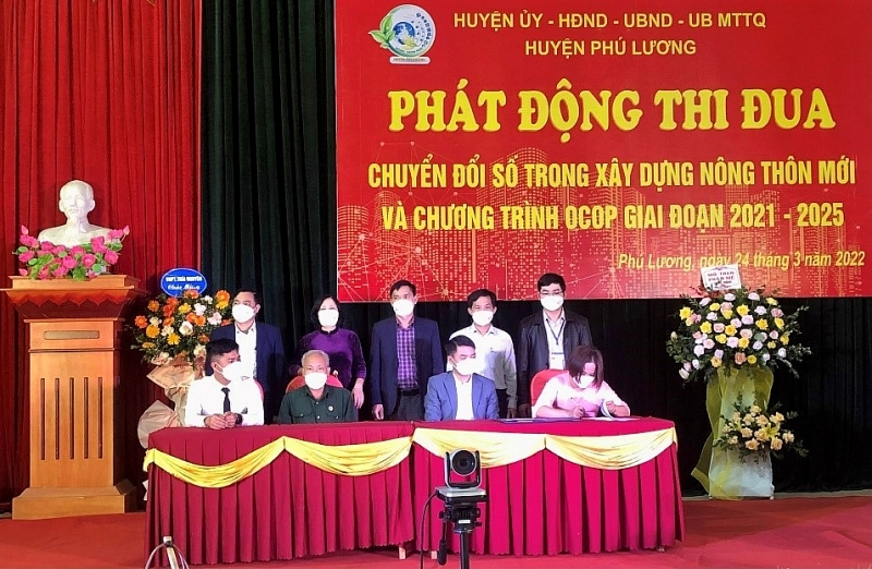 Đại diện các xóm trên địa bàn xã Cổ Lũng, huyện Phú Lương (Thái Nguyên) ký cam kết thi đua thực hiện chuyển đổi số trong xây dựng Nông thôn mới.