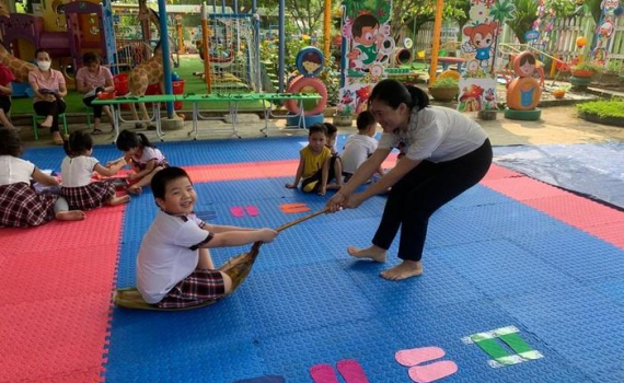 Trẻ mầm non ở tỉnh Quảng Nam đang tham gia các hoạt động trong trường.