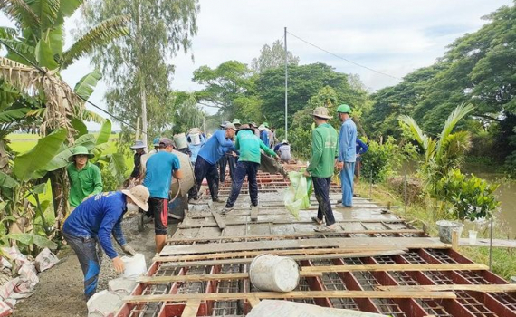 Vận động xây dựng 8 đập chống xâm nhập mặn tạm trên tuyến kênh Rạch Giá - Long Xuyên, bảo vệ khoảng 2.400ha sản xuất lúa. Sửa chữa, cất mới 284 cây cầu giao thông nông thôn, sửa chữa hàng ngàn bóng đèn đường và đoạn dây điện bị hỏng, lắp đặt mới hàng ngàn trụ đèn, bê-tông hóa hơn 210km đường giao thông. Trồng trên 120.000 cây xanh ven đường và các công trình nông thôn, phục vụ nông nghiệp khác…