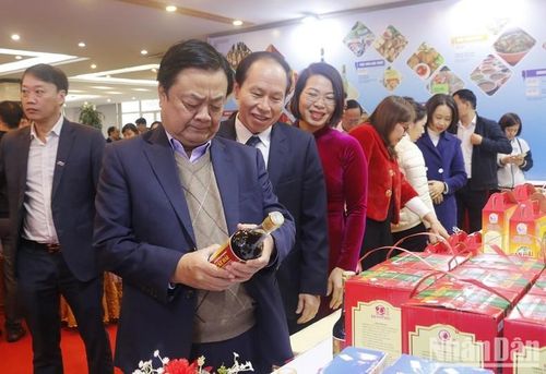 Bộ trưởng Lê Minh Hoan đi thăm các gian hàng OCOP trưng bày tại Hội nghị.