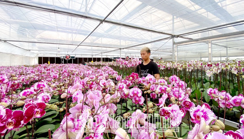 Mô hình trồng hoa lan hồ điệp công nghệ cao trong nhà màng của HTX sản xuất và kinh doanh hoa cây cảnh Nam Phong, xã Nam Phong (thành phố Nam Định).