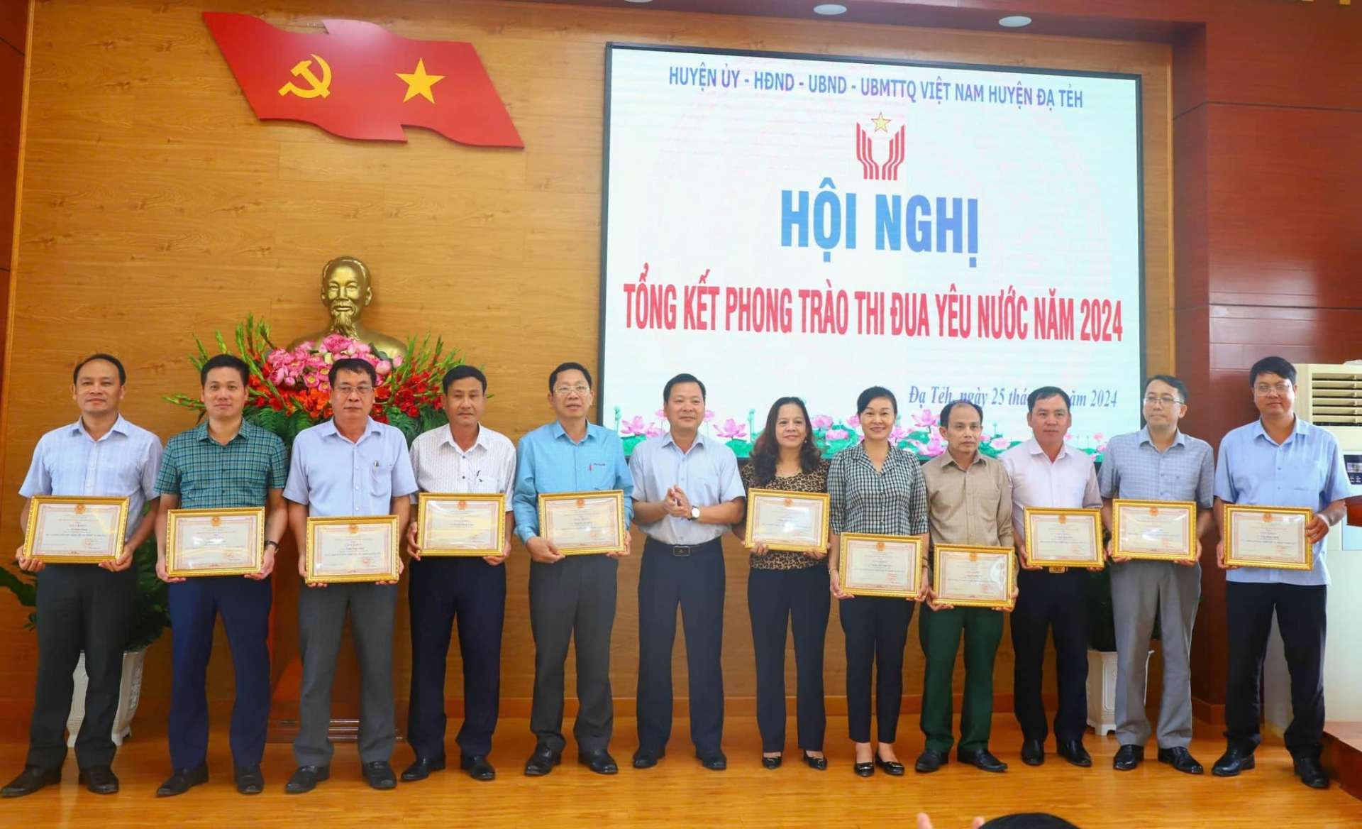 Dịp này, UBND huyện Đạ Tẻh cũng đã tổ chức khen thưởng, tặng danh hiệu “Chiến sỹ thi đua cơ sở” cho 99 cá nhân; tặng danh hiệu “Lao động tiên tiến” cho 23 tập thể và 158 cá nhân; tặng Giấy khen của Chủ tịch UBND huyện cho 50 tập thể và 134 cá nhân đã có thành tích hoàn thành xuất sắc nhiệm vụ năm 2024.